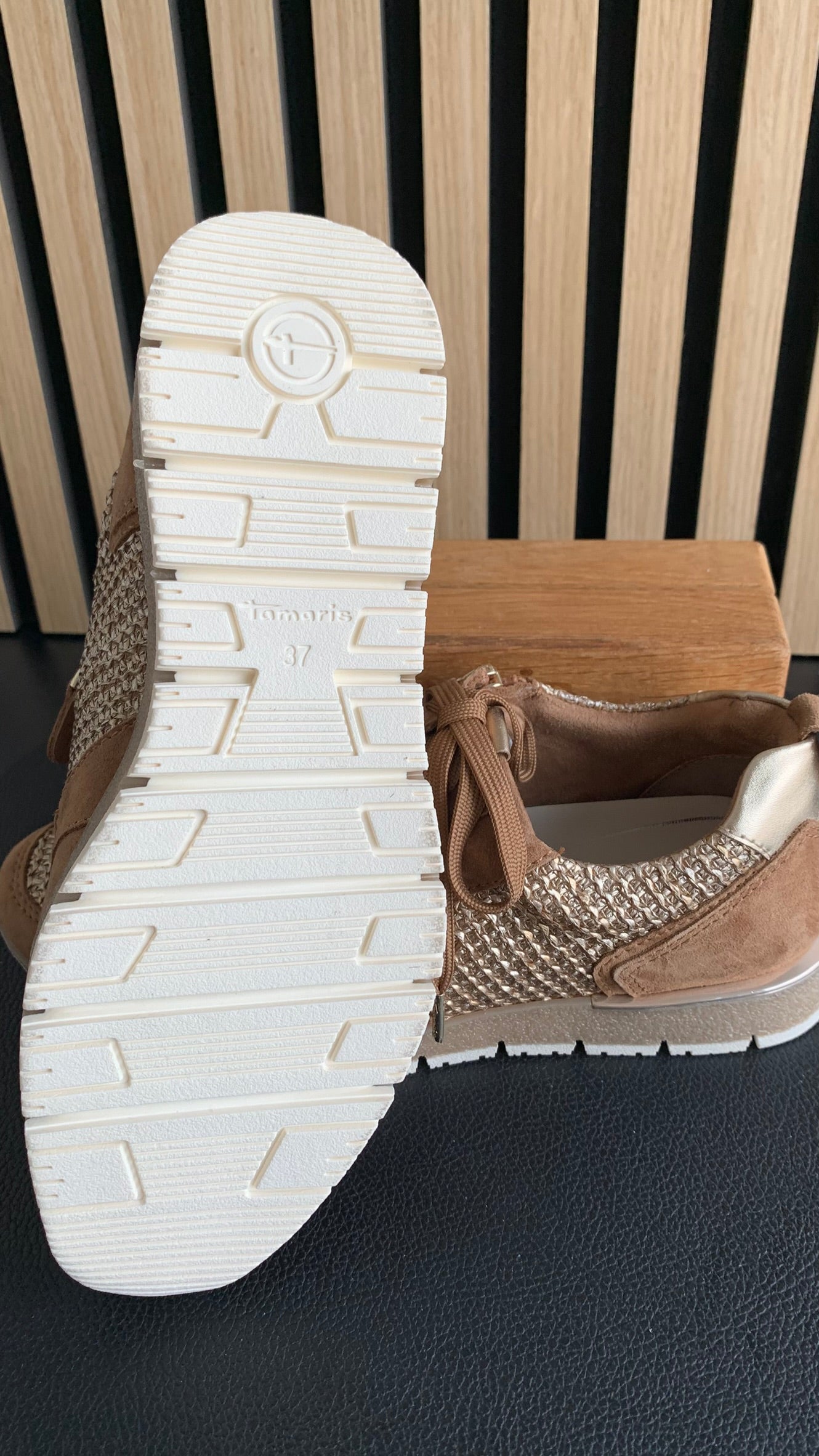 - Obermaterial: Materialmix aus Leder, Textil und Synthetik